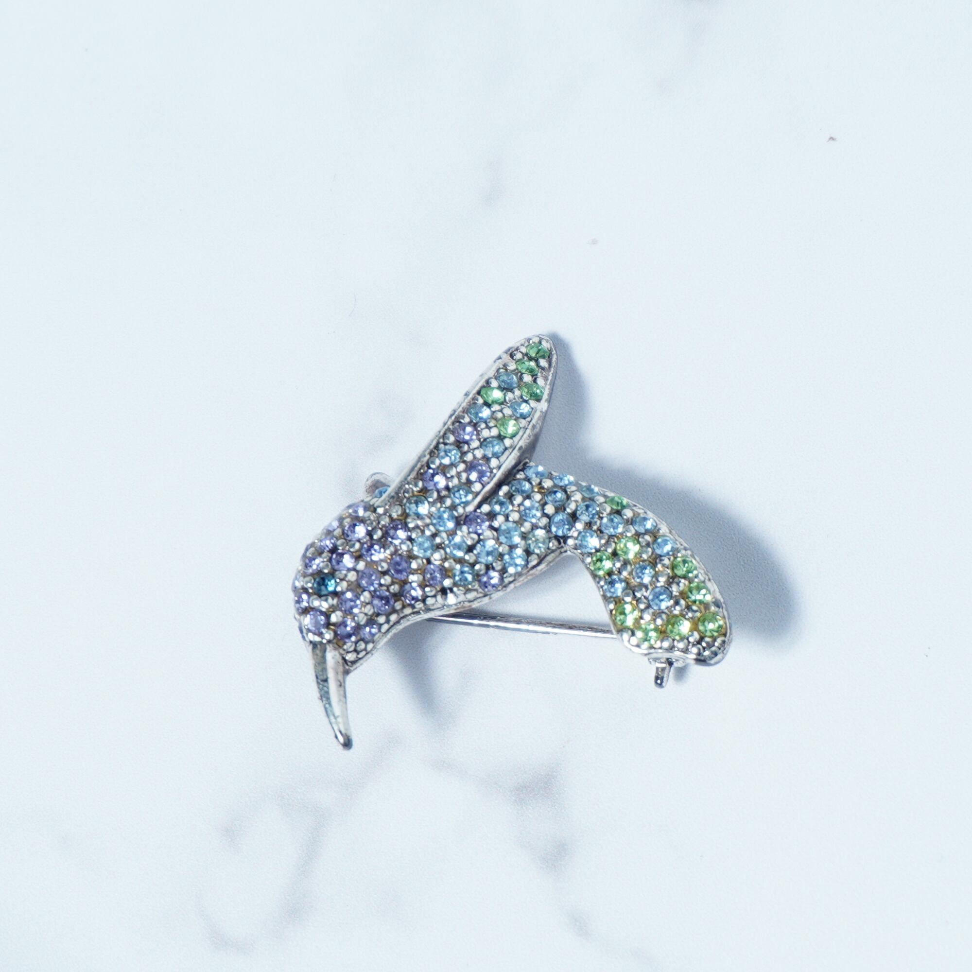 ・カラフルなラメが施された美しいバードデザインのブローチ silver