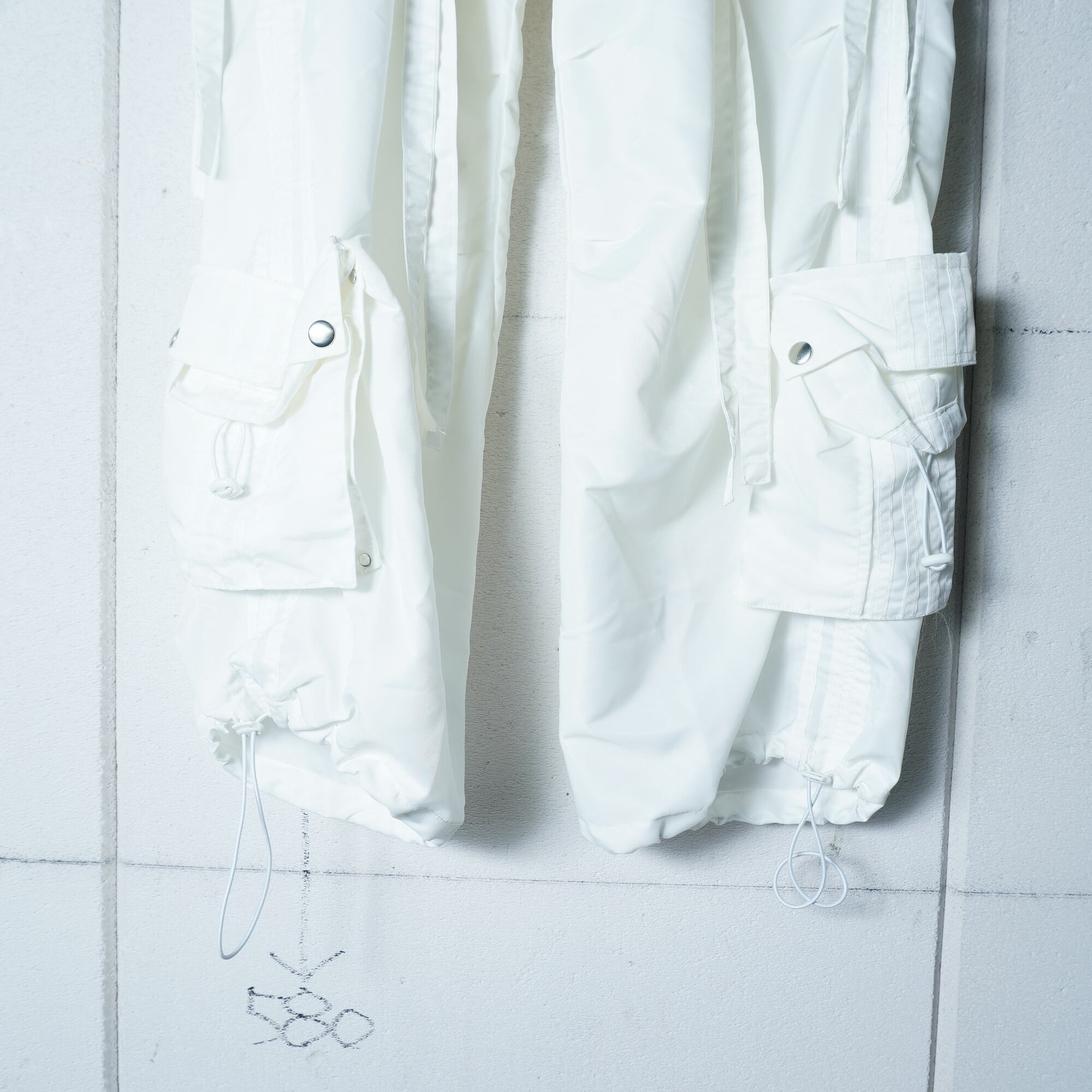 【GS THE ULTIMATE EXPERIENCE】ジーエスジアルティメットエクスペリエンス 極美品"Re-Nylon"3ストライプテクノカーゴパンツ white