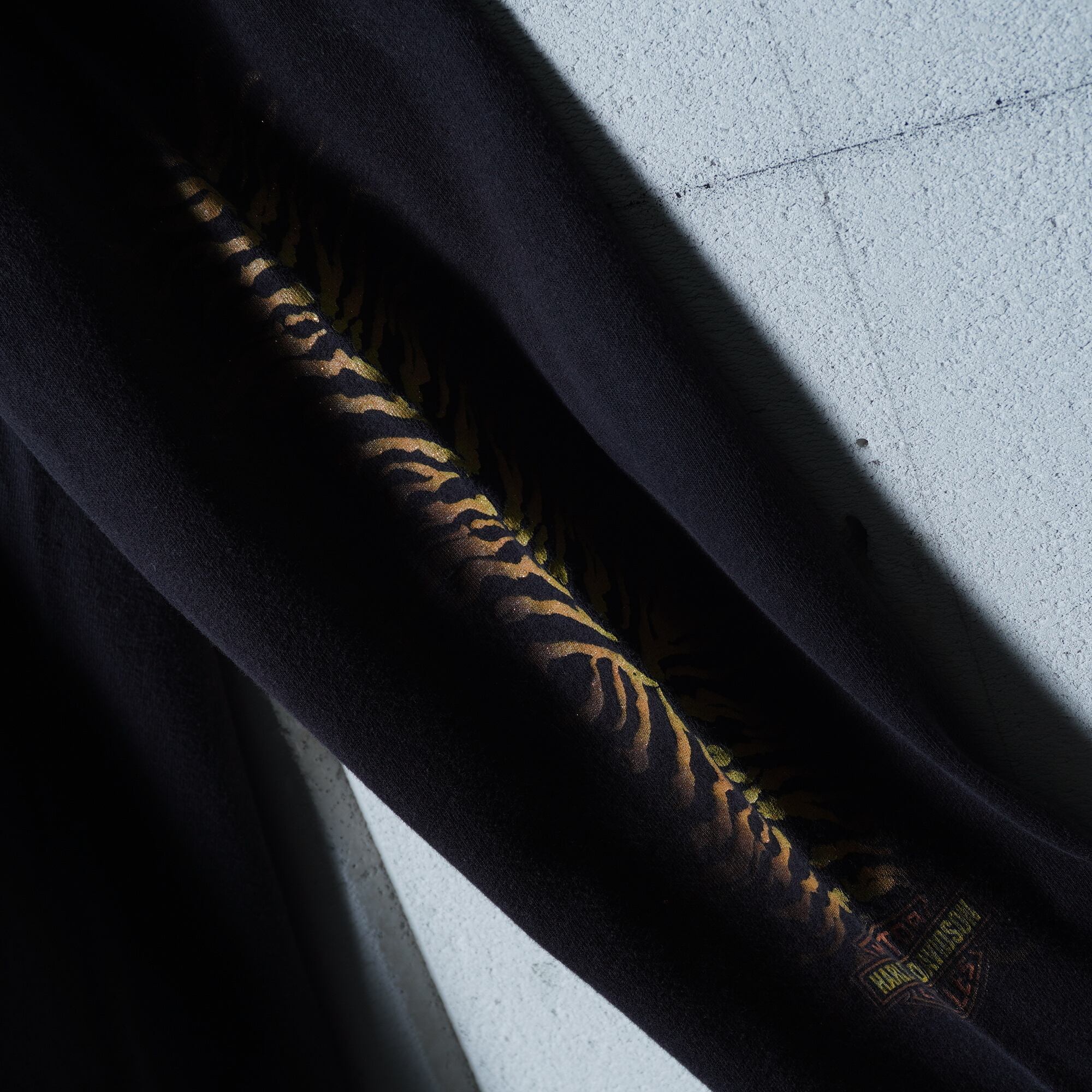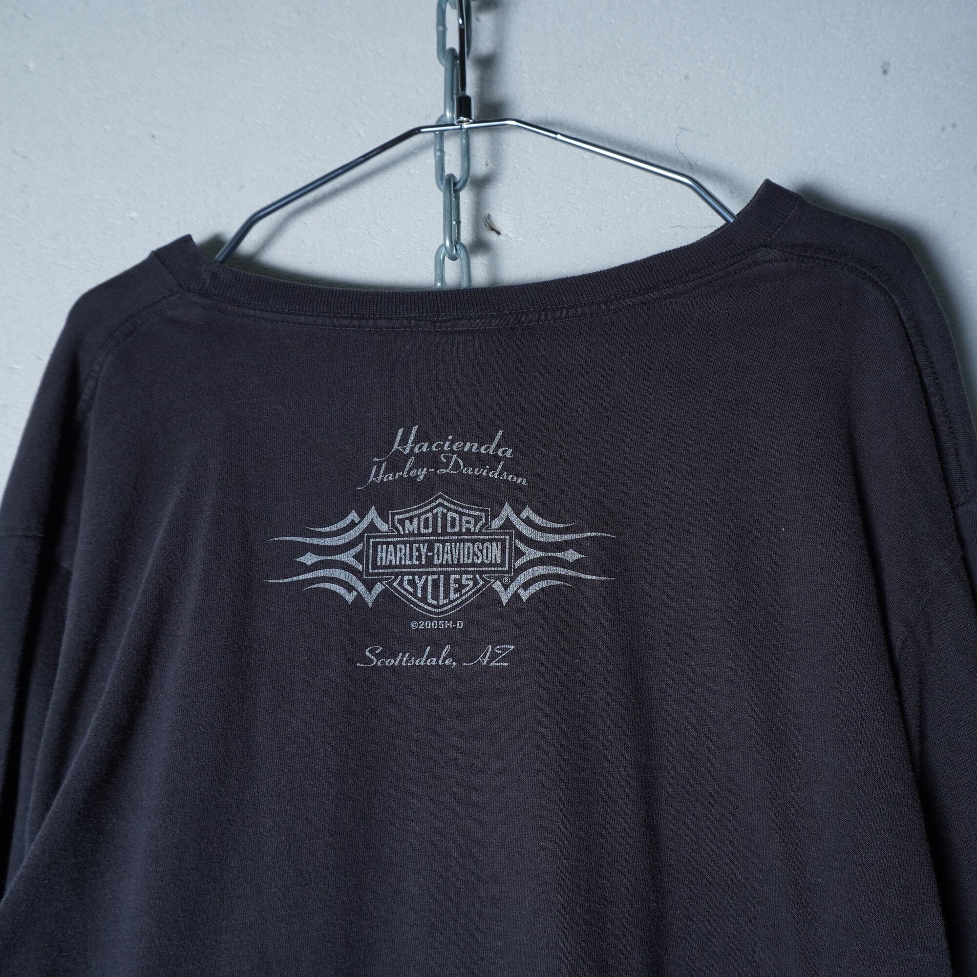 【HARLEY DAVIDSON】ハーレーダビッドソン 05s USA製ラメファイヤーロゴロングスリーブTシャツ black
