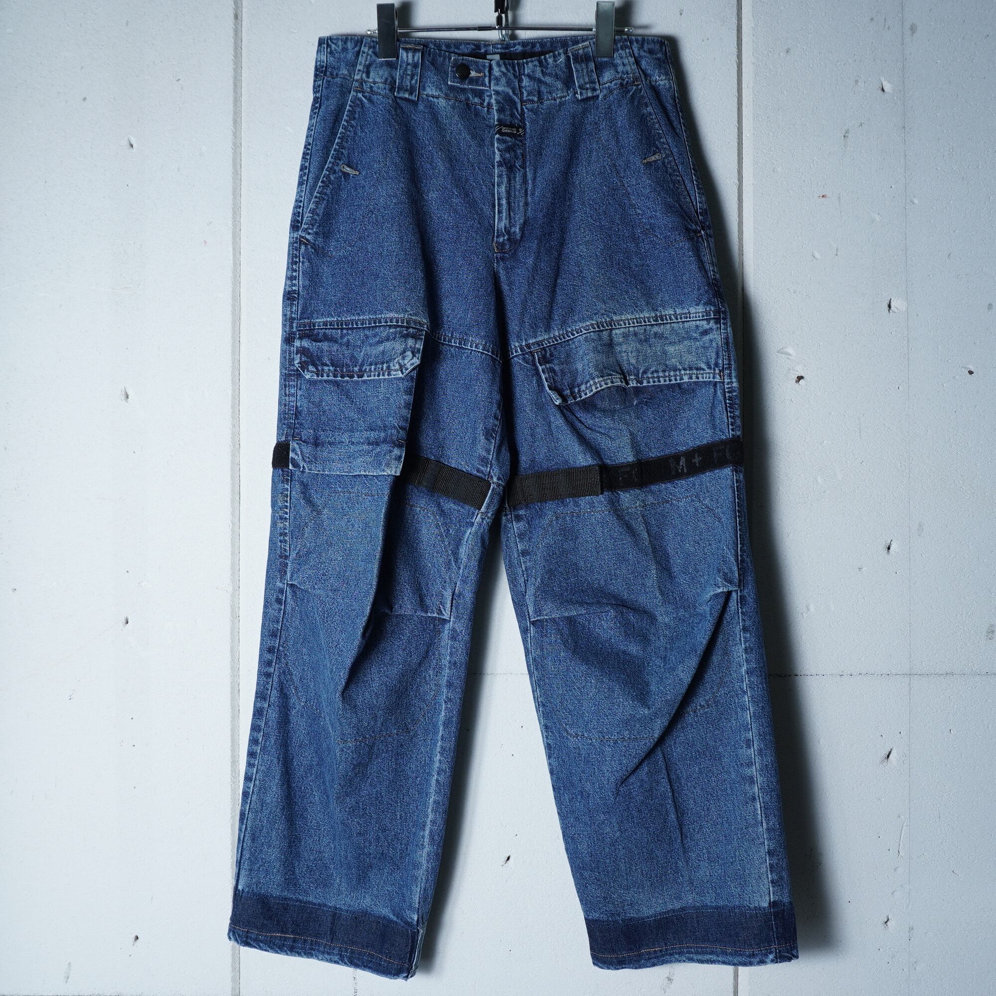【MARITHE+FRANCOIS GIRBAUD】マリテ+フランソワ・ジルボー”Y2K”ベルクロデニムワイドシャトルパンツ blue