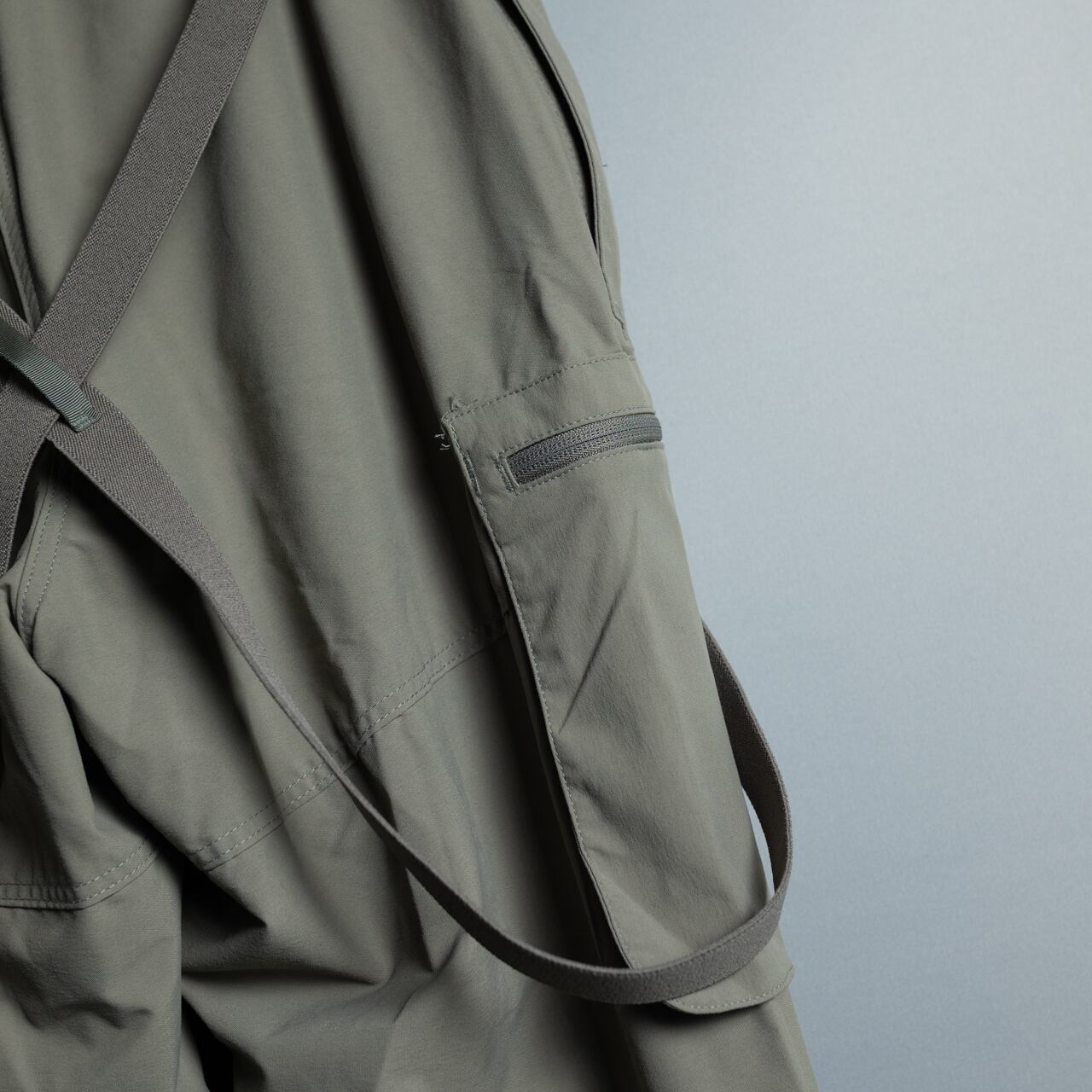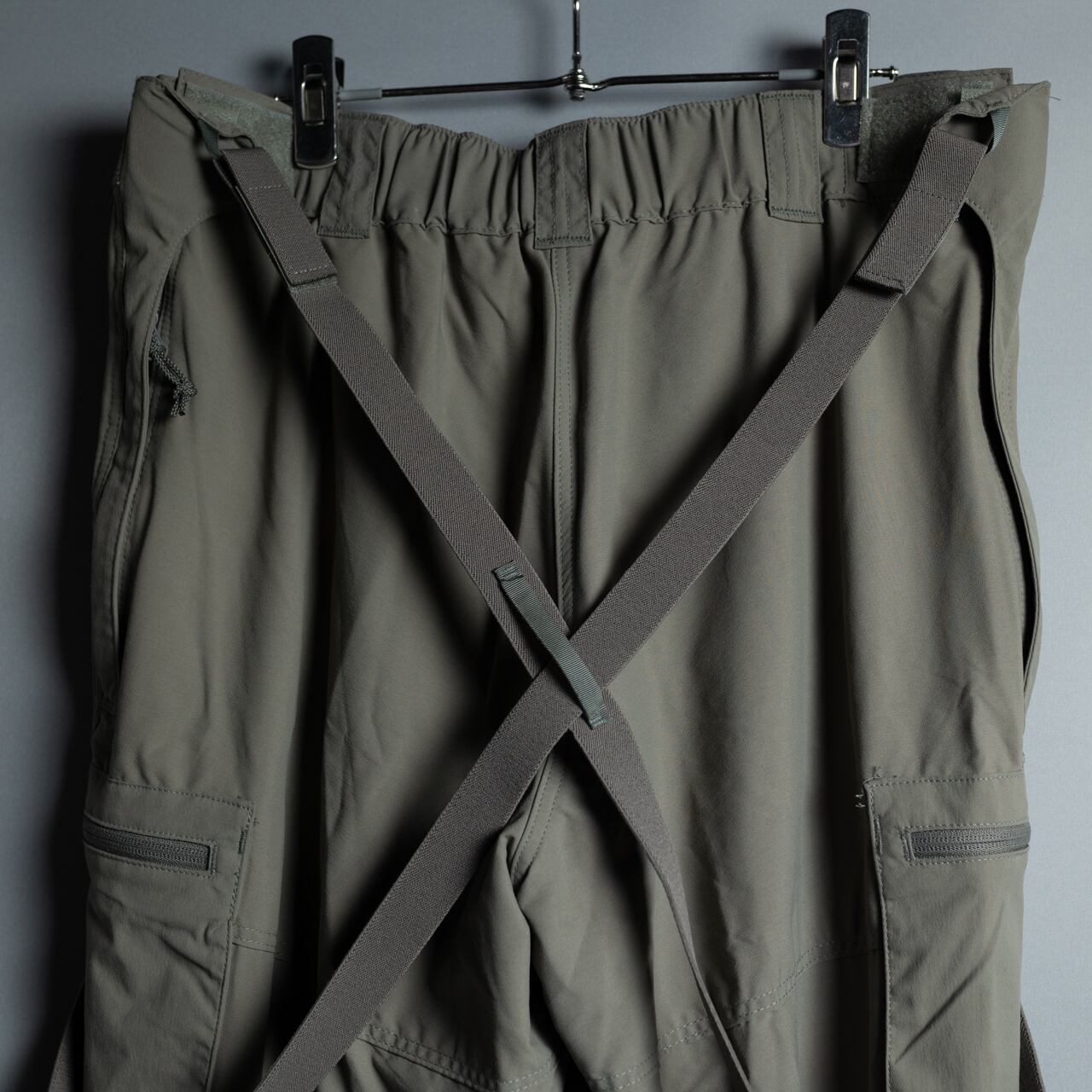 ネイビーシールズ用に生産されたLevel5カーゴパンツ、ナイロン100%のソフトシェル素材を使用したサスペンダー付きモデル。