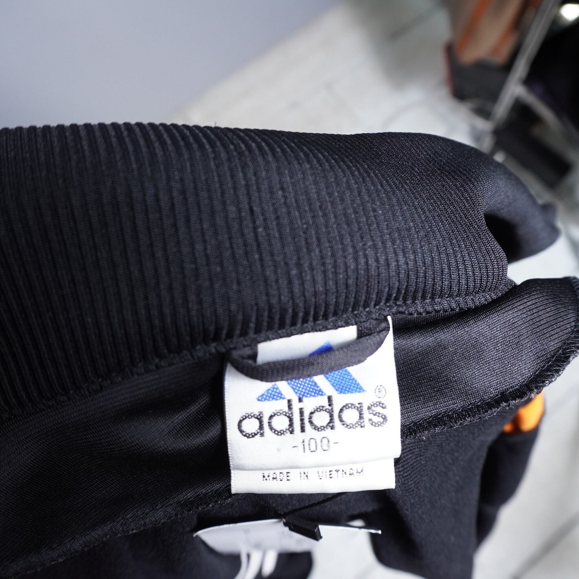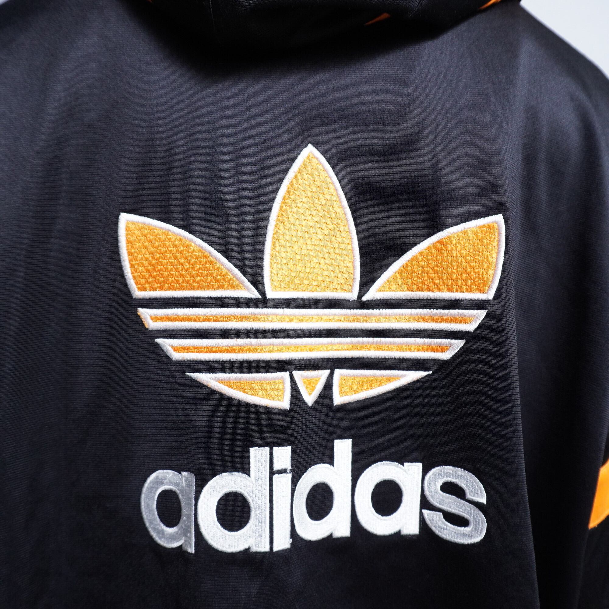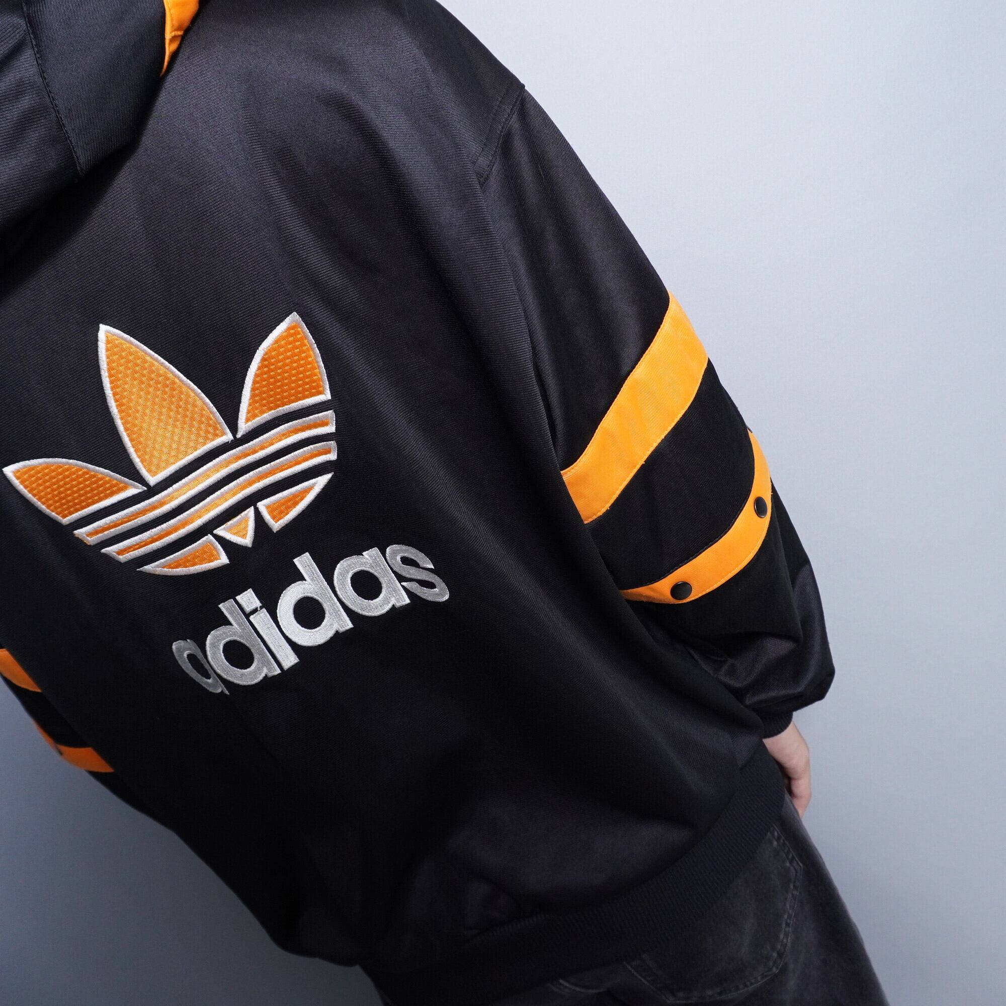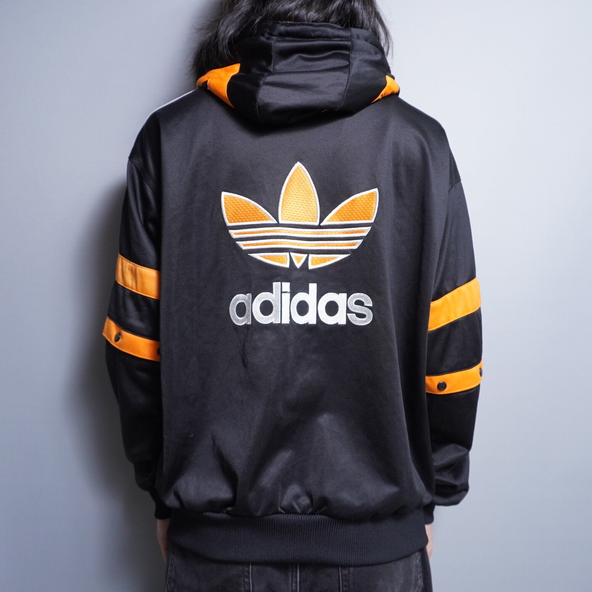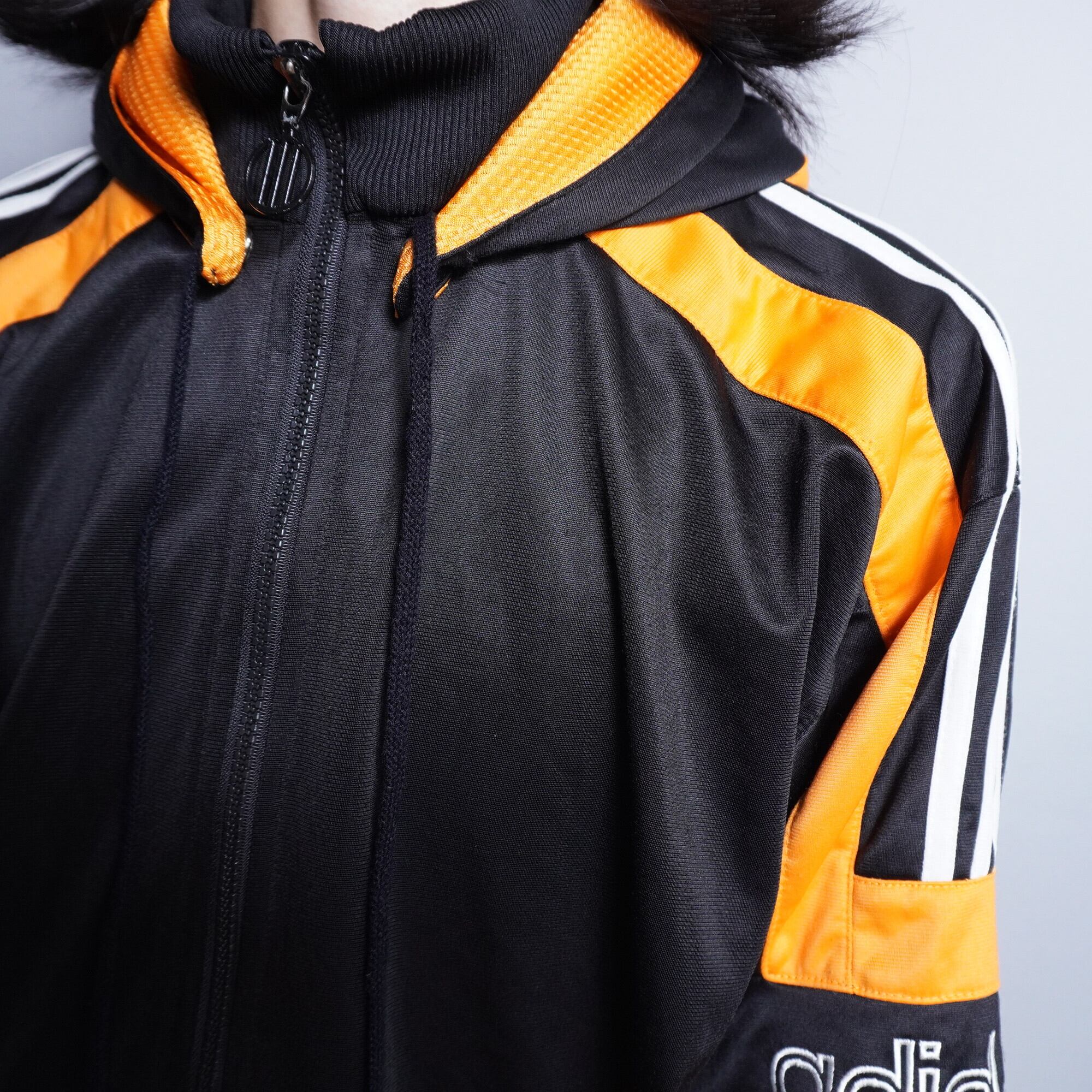 【adidas】vintage 90s adidas 3ライン フード・アーム着脱式トラックJTK 黒 x 橙