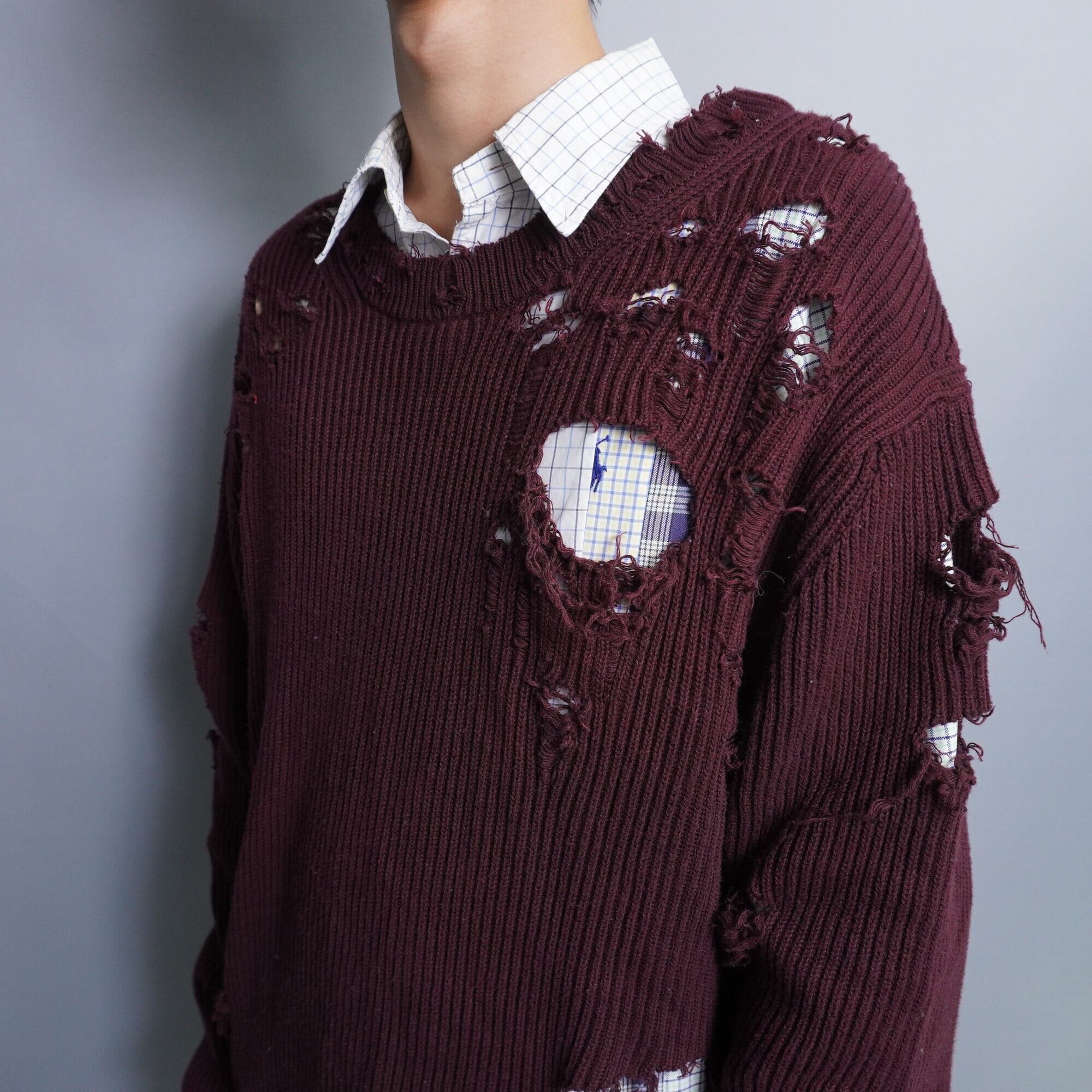 クラッシュ加工を施したこなれ感たっぷりの仕上がりのニットトップ。