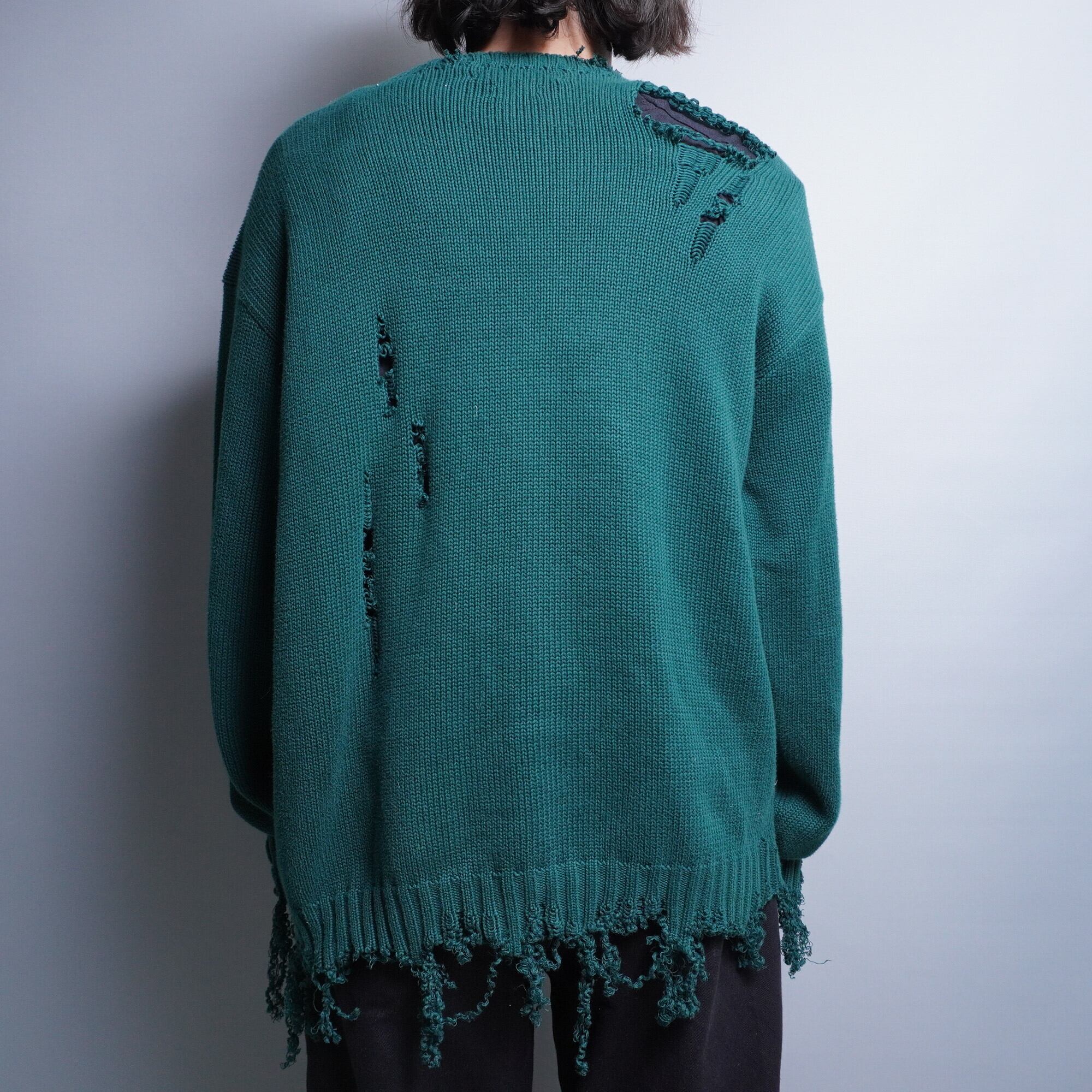 Polo by Ralph Lauren ラルフローレン Grunge Destroy Damage Knit 深緑 XL