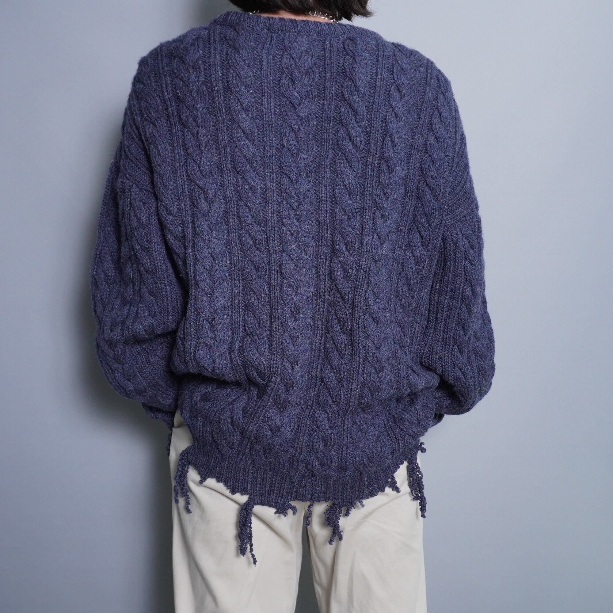 【old】Grunge Destroyed Damage Wool Cable Knit