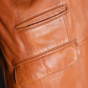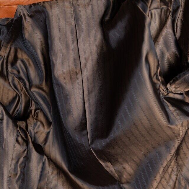 美しいキャメルカラー、滑らかなラムレザーの触り心地が最高のテーラードジャケット。デニムで気崩すのもオススメ。