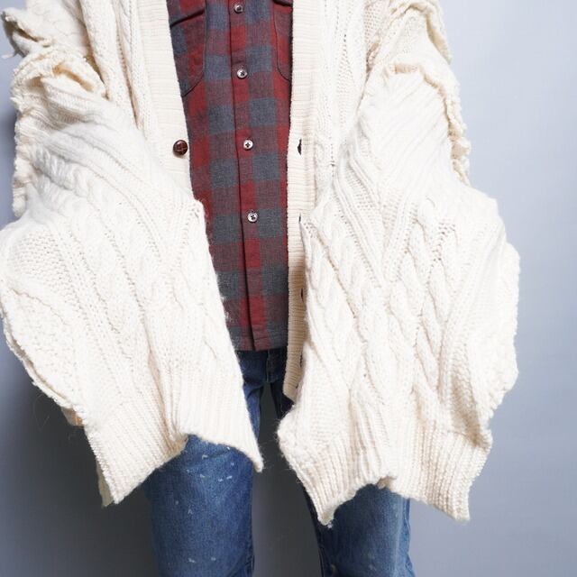 敢えて縫い代を表に出し、カットオフ仕様により着用を重ねていくことに経年変化でフリンジへと変貌。身幅を拡大、袖の溜まりをよりボリューミーにした、唯一無二のルーズなシルエットへと落とし込んだ一着。