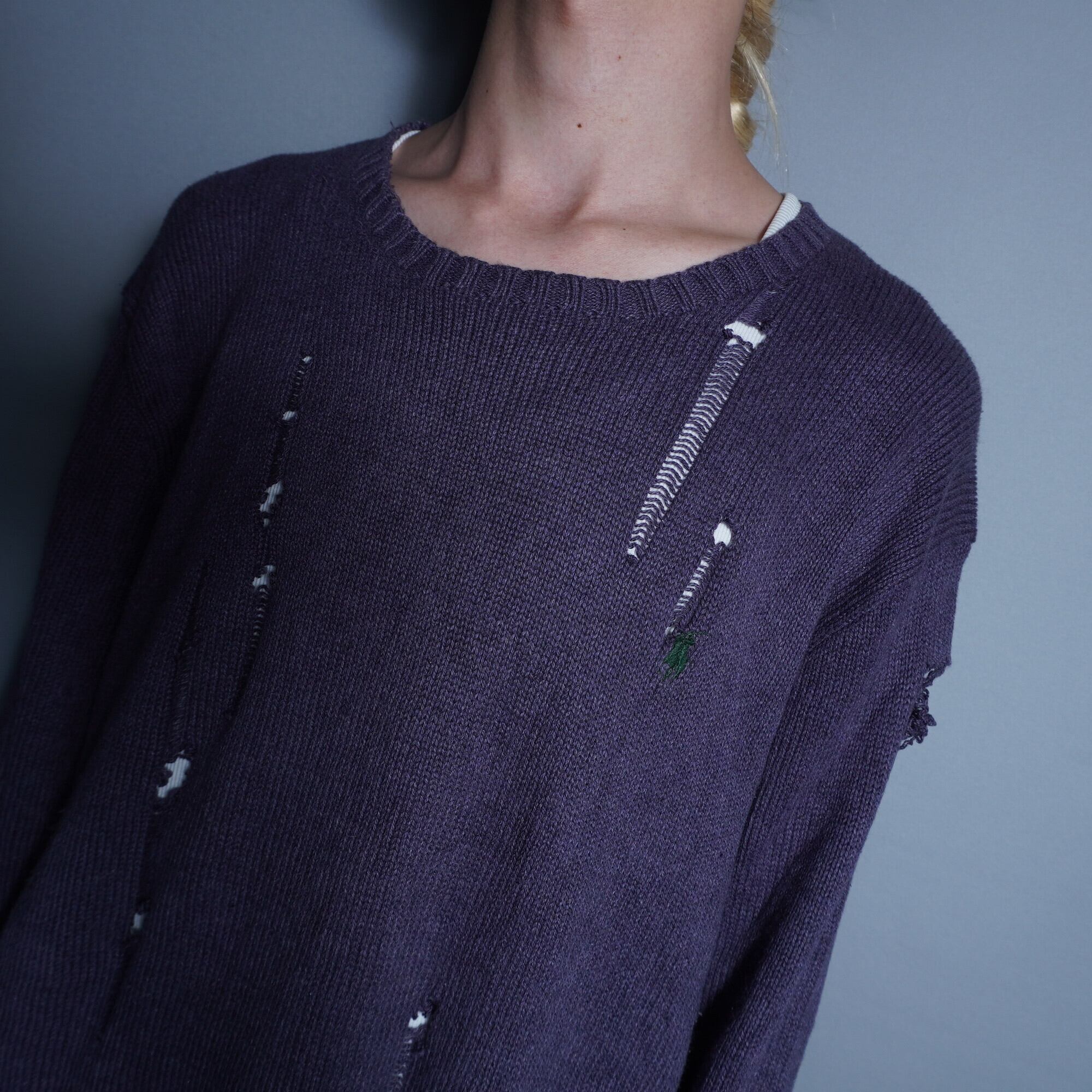 【Polo by Ralph Lauren】 ラルフローレン Grunge Destroy ニット ブルーパープル 2XL
